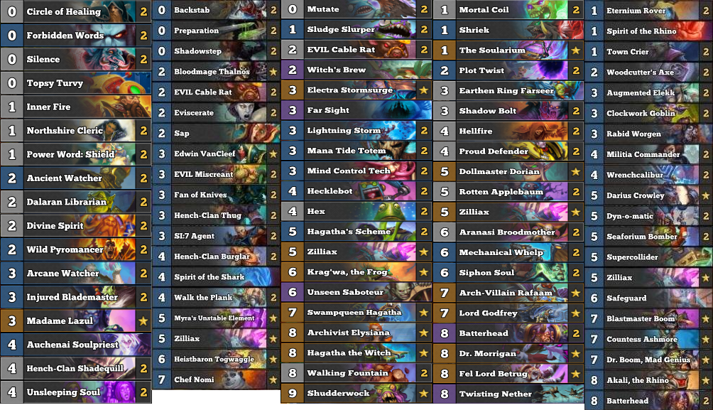 위대한 위즈뱅 님이 18가지 스캇으로 밝혀지며 잊혀진 것처럼 얘도 잊혀질 것이다. 위즈뱅 덱보단 실전성이 있지만 덱의 종류도 꼴랑 5가지밖에 안되고 침묵사제는 그냥 함정이다.