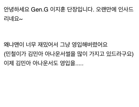 엄재경의 뜬금없는 스킬설명과 강민의 개소리 고인규의 억지텐션 캡틴잭의 딕션 또 자기만의 아이덴티티 왜냐~까지 합쳐진 해설자다