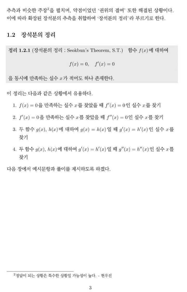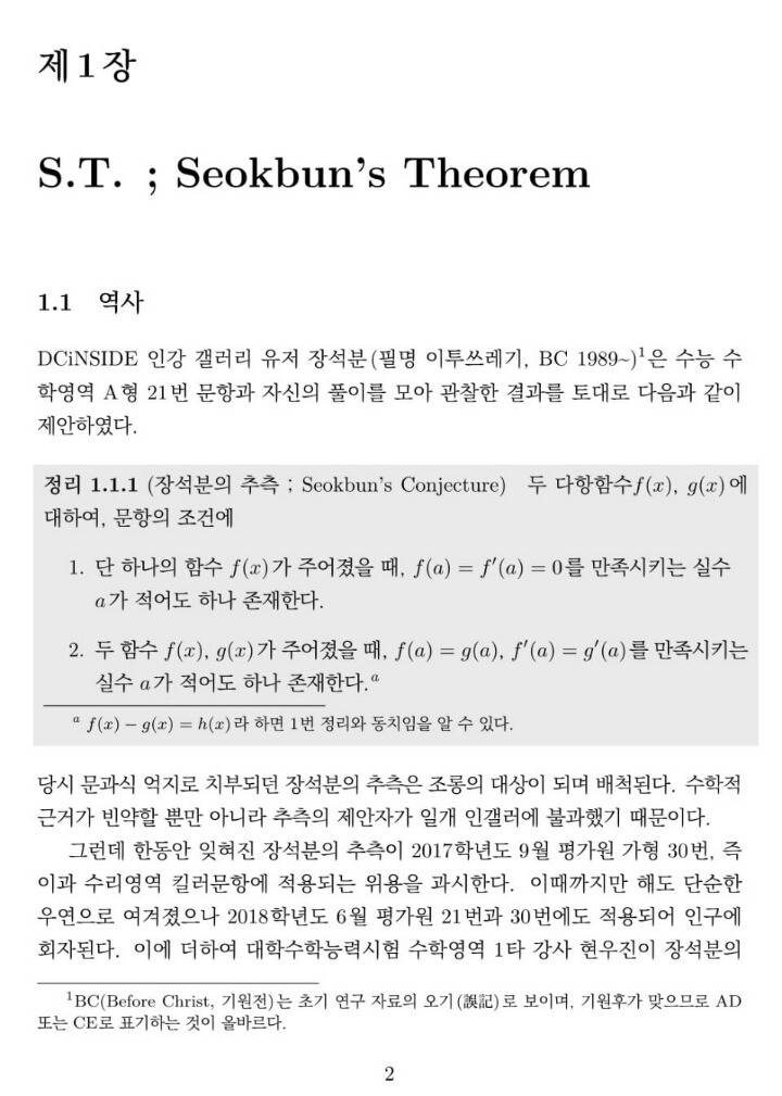 이 절에서는 DCINSIDE 인강 갤러리의 유저인 장석분(이투쓰레기, B.C.1989~)이 제안한 '장석분의 추측'을 다룬다.