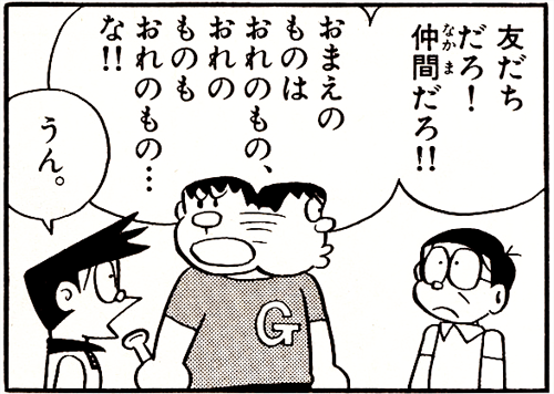 퉁퉁이 : 友だちだろ!仲間だろ!! おまえのものはおれのもの、おれのものもおれのもの…な!!