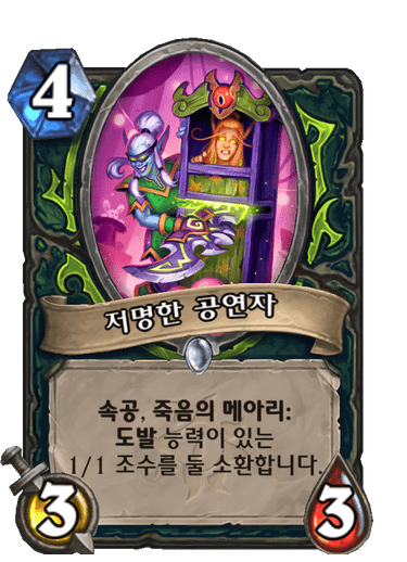 4코 3/3 속공, 죽음의 메아리: 도발 능력이 있는 1/1 조수를 둘 소환합니다.
