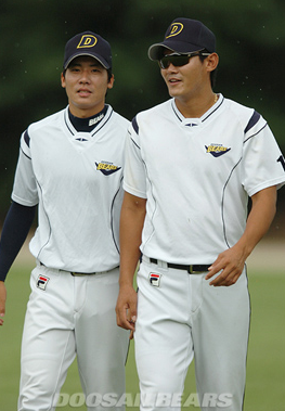 ↑ 선수시절, 오른쪽은 노경은이다.