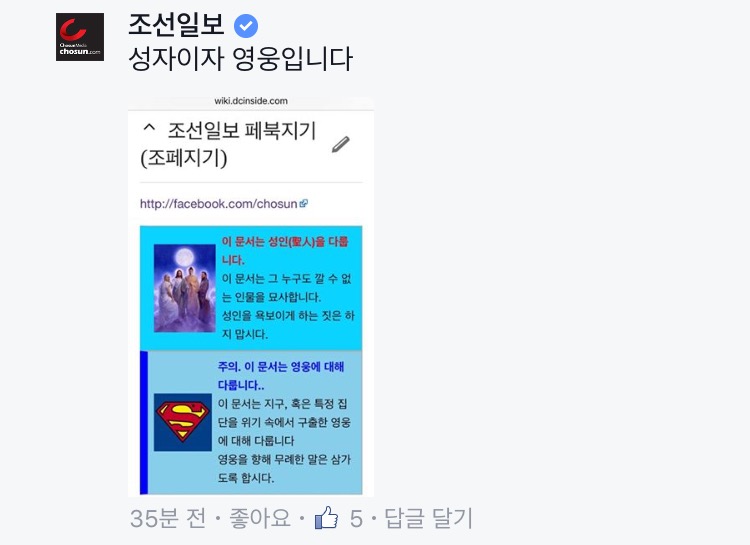 조선2보 페이스북. 요즘은 이쪽에서 드립친다