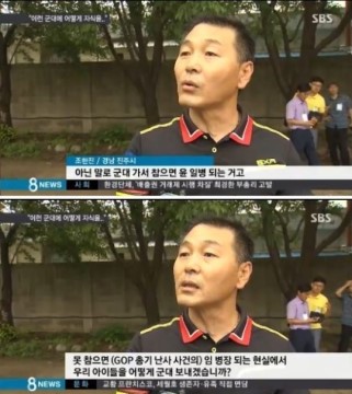 SBS뉴스에 나와서 인터뷰를 하면서 참으면 윤일병되고 못참으면 임병장되는 현실에서 누가 군대보내고 싶냐고 군대를 비판을 했다.
