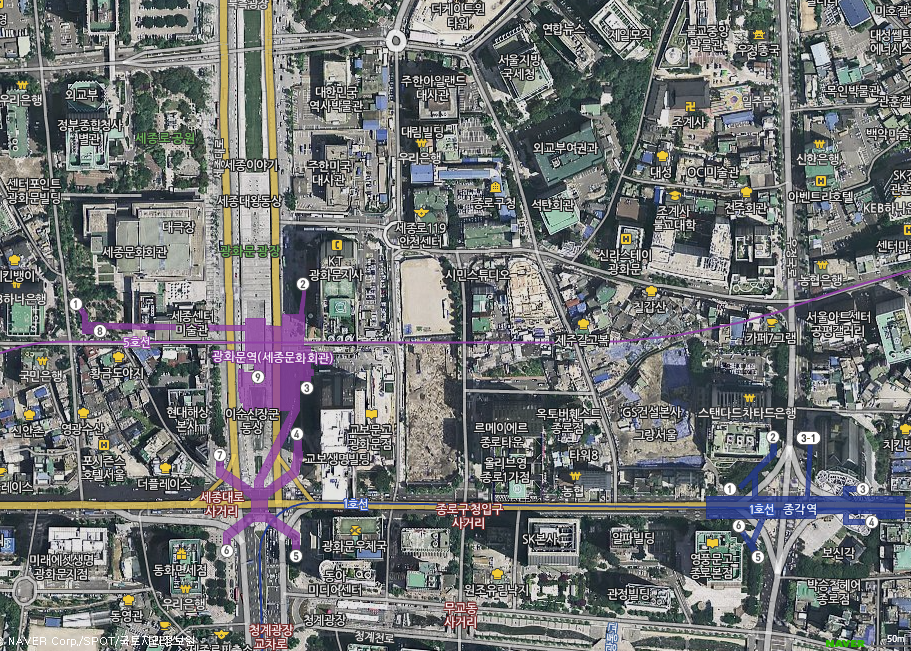 5호선 환승하기 빡세니까 집앞에 5호선 있는거 아니라면 광화문 갈때는 그냥 길거리 돌아다니면 보이는 1호선 탄 다음 종각역에서 내려라
