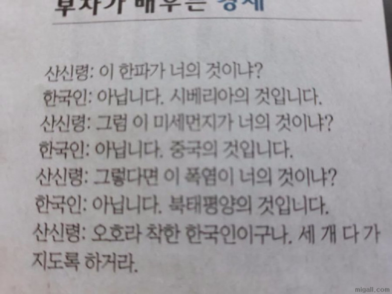 ex3)착한 짱깨는 죽은 짱깨다.