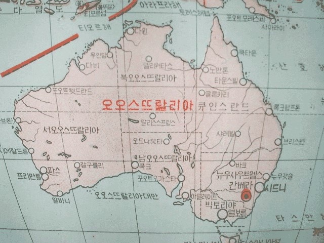 1970년대 지구본은 호주를 오오스뜨랄리아로 표기해놨다.