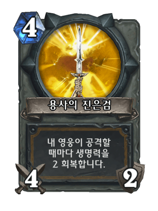 씹서 기본 무기 4코 4/2에 공격할 때마다 내 영웅에게 2힐을 해준다.