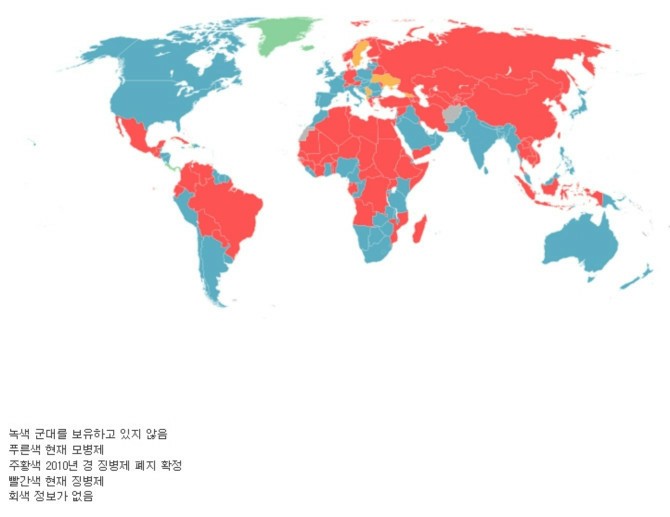 빨간색 국가는 징병제 시행 국가