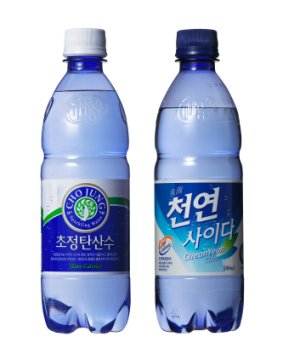 왼쪽은 광천수에다 탄산 추가해서 파는 '초정탄산수'. 저것도 탄산수 중에선 혜자.