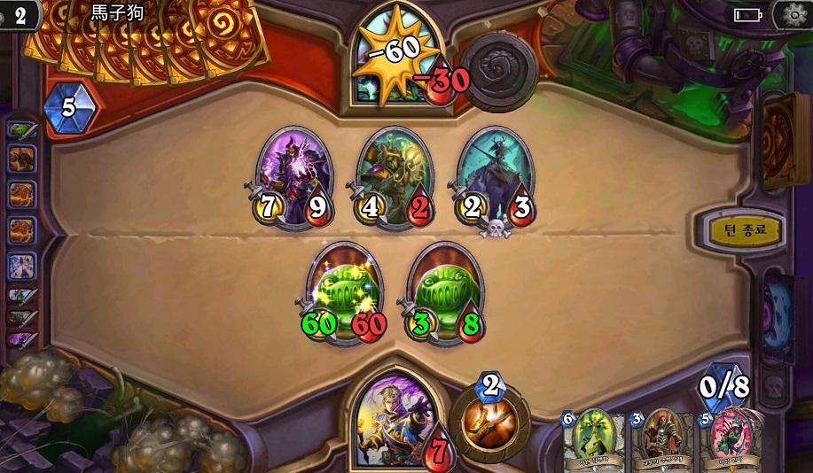 광명의 정령이라는 내 주문의 코스트를 1 줄여주는 하수인이 나와서 더 빠른 타이밍에 쓸수있게 되었다.