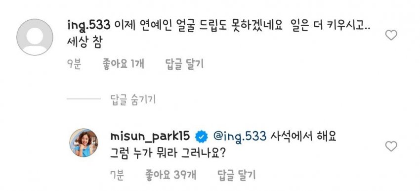 그랬더니 박미선에게 위와 같이 비판을 받았다.