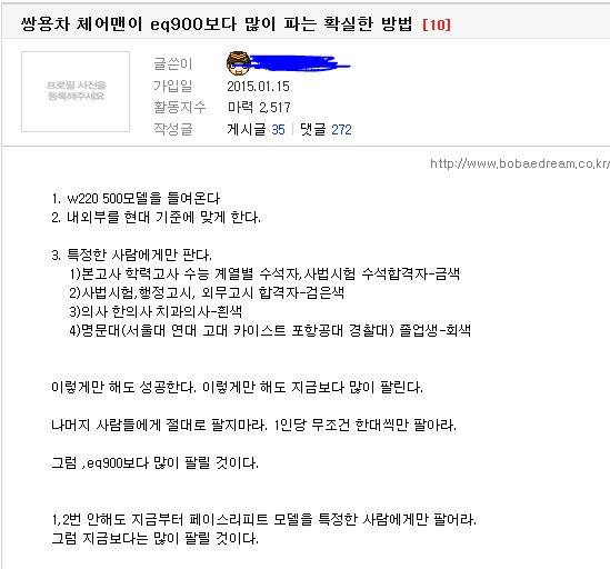 답이 없는 사골국 체어맨을 위해서 보배드림의 차잘알 전문가님께서 어마어마한 해법을 제안하셨다.