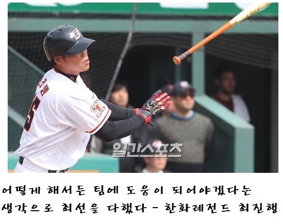 뭐 아무리 못해도 허리 안 좋은 김태균보단 오래 하겠지...일줄 알았는데 주전 좌익수로 나설 것 같다. 10년 넘게 외야만 보다 내야 보려니 몸이 꼬였나?