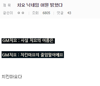GM과 함께 이벤트를 도는 이벤트가 있었는데 치킨마요라고 밝혔다.[3]