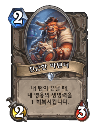 2코 2/3, 내 턴이 끝날 때, 내 영웅의 생명력을 1 회복시킵니다.