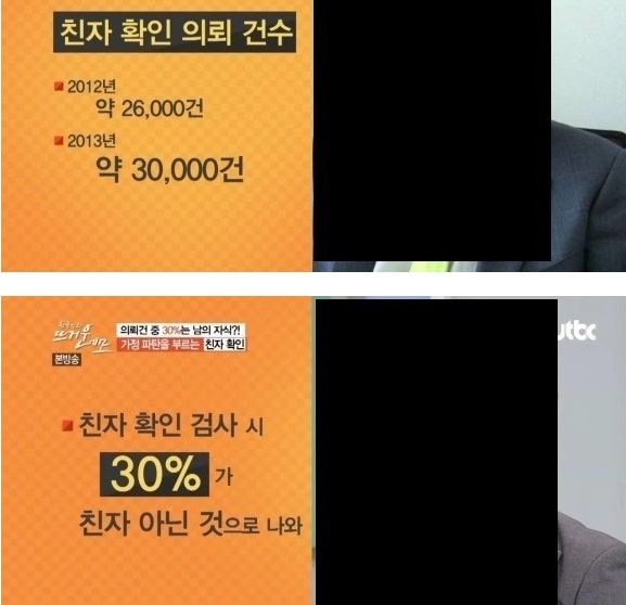남자의 경우에도 의심할만할 때 검사해보면 3분의 1은 남의 새끼라는 결과가 뜬다.