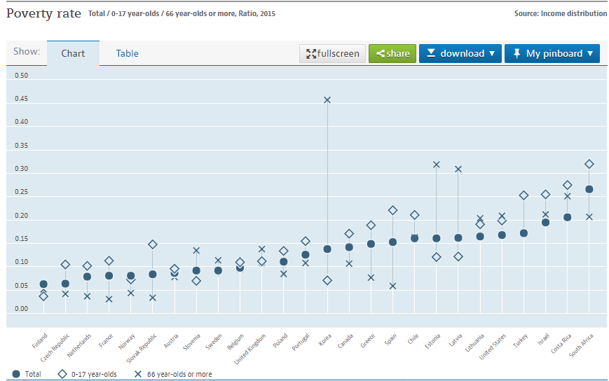 2015년 OECD 통계에 헬조선 노인 빈곤율은 비교할 수 없는 상위 1등이다. 물론 노인 자살율도 세계 최고 수준. 반대로 캐나다는 헬조선의 국민 연금보다 더 많은 연금을 일반적으로 지급한다. 그렇기에 노인 빈곤율이 높다해도 어느정도 생계 유지는 된다.