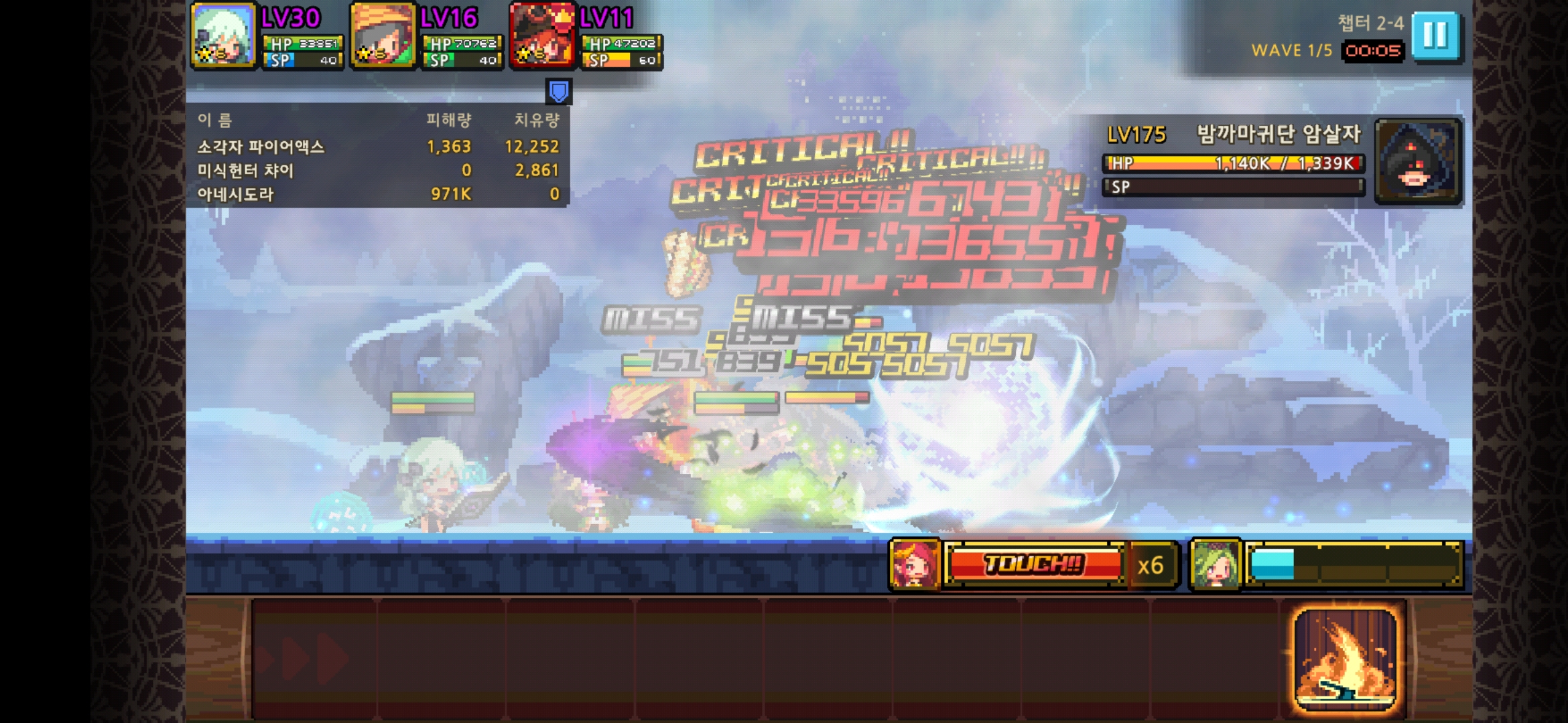 여기는 최소 딜이 10만단위로 떠야 클리어 가능이다
