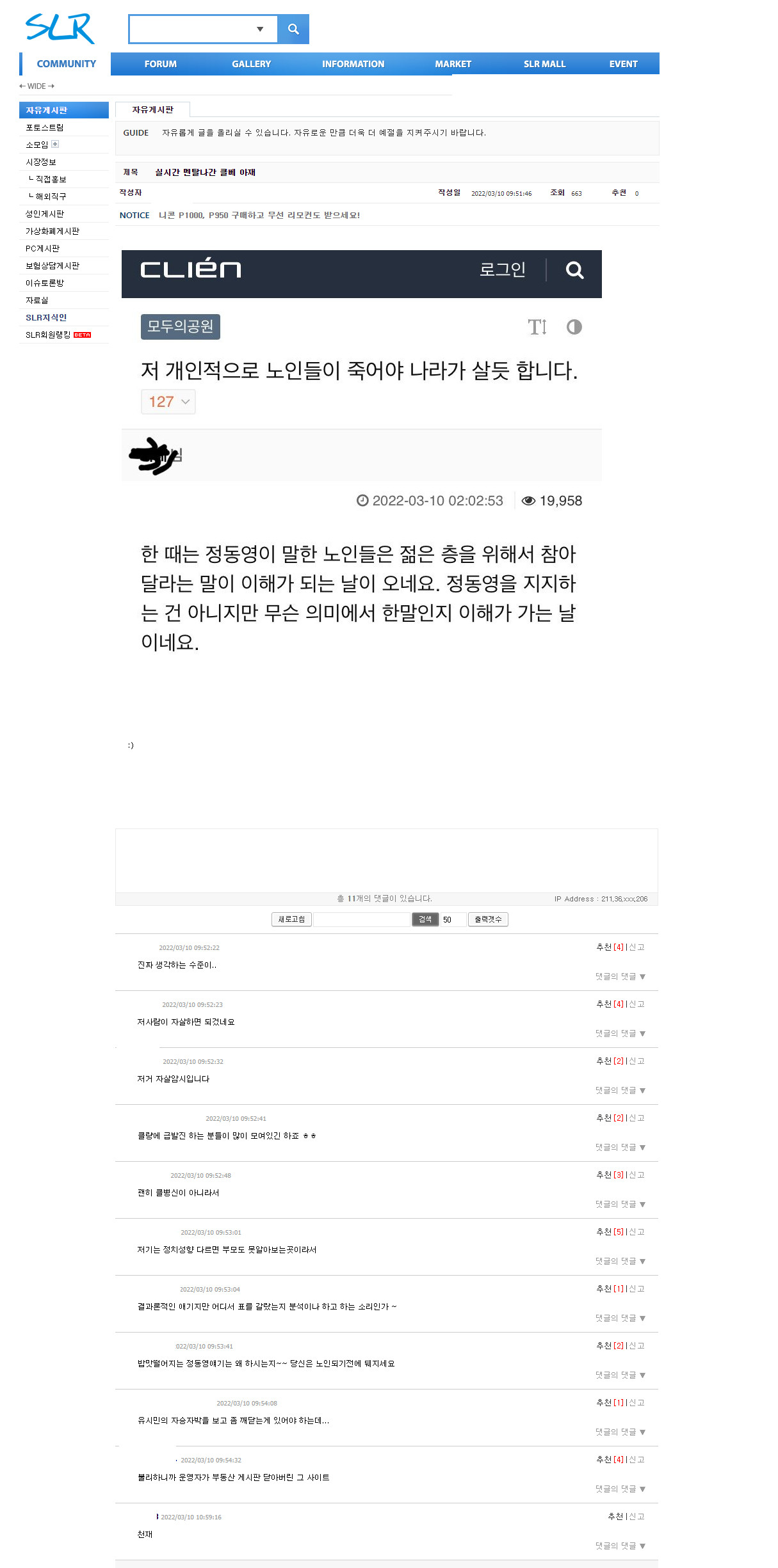 솔직히 모든 소모임 게시판들 다 싸잡아서 비판하긴 그렇긴 한데 어차피 클리앙의 대부분은 새소게하고 모공이고 그 둘은 진짜 씹노답이다. 김어준같은 새끼 이게 말이야 똥이야 싶은 좆같은 소리 하는거 빨면서 거기 조금이라도 의문 제기하면 일베충 몰아가는 노답새끼들