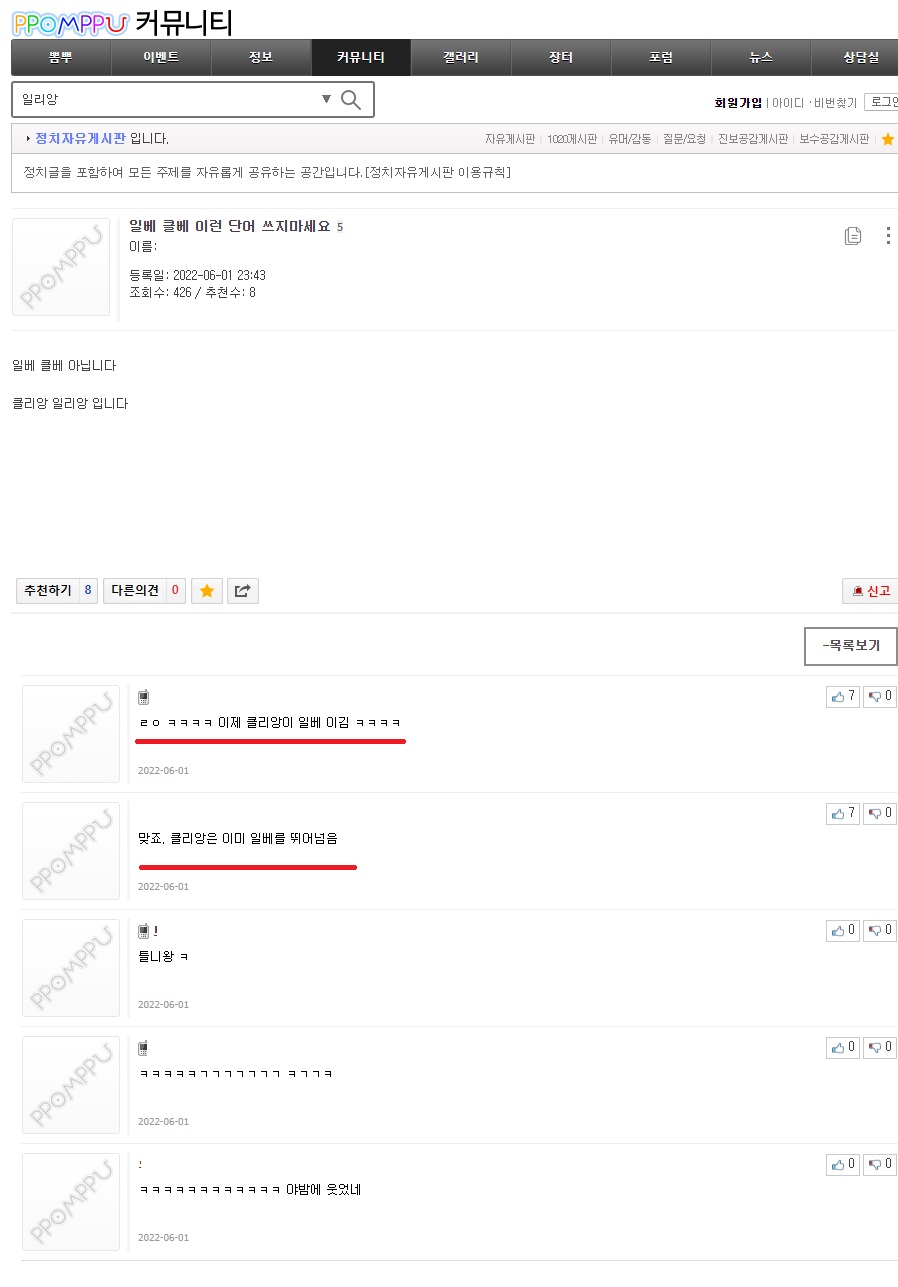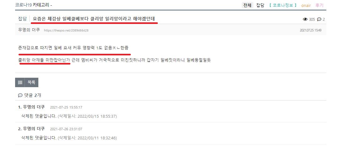 — 왜 키배글을 남기는 게 현명한 상황에서 삭제하지? 증거인멸?