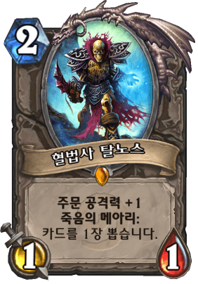 ㄴ탈노스 정도면 넙죽 절하고 만들어야 한다. 만들기 애매한 전설은 사제에 킹클라 넣게 만들까? 같은걸 의미하지 탈노스는 여기저기 들어가는 필수 카드다