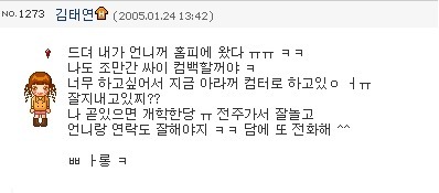| 장잉정신이 돋보이는 글입니다. 얼마나 할 짓이 없었으면 이런 일을 했을까 하며 부탁을 랄랄치는 글입니다. 너 이새끼 화이팅 |