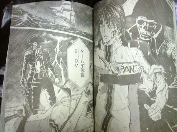 릿카이대랑 리벤지 결승매치에서 붙을 때는 더 가관인데 주인공 기억상실은 더 이상 놀랍지도 않으며 주인공이 이기게하기 위해서는 일단 5번째 경기인 단식1까지 가야하는데 그러다보니 어쩔 수 없이 테즈카가 사나다한테 지는 어처구니없는 전개때문에 테즈카는 졸지에 강약약강 거품으로 전락 + 테즈카에게 농락당한 큐슈 2강 치토세는 ㅄ이 되버림. 그나마 1경기는 경기 전개라도 어느정도 재밌게 흘러가지 나머지 경기들은 어처구니 없는데, 빡쳐서 키리하라랑 카이도는 데빌화 되버린다는 웃음보에 아예 사람이 바뀌어버리는 니오의 일루전, 프로들이 무의식적으로 쓴다는 싱크로를 자유자재로 발동하는 중학생들, 사나다보다 더 쎈 유키무라를 한순간에 바보로 만들어버리는 주인공 엔딩으로 끝나며 모두가 빅웃음을 터뜨렸다.