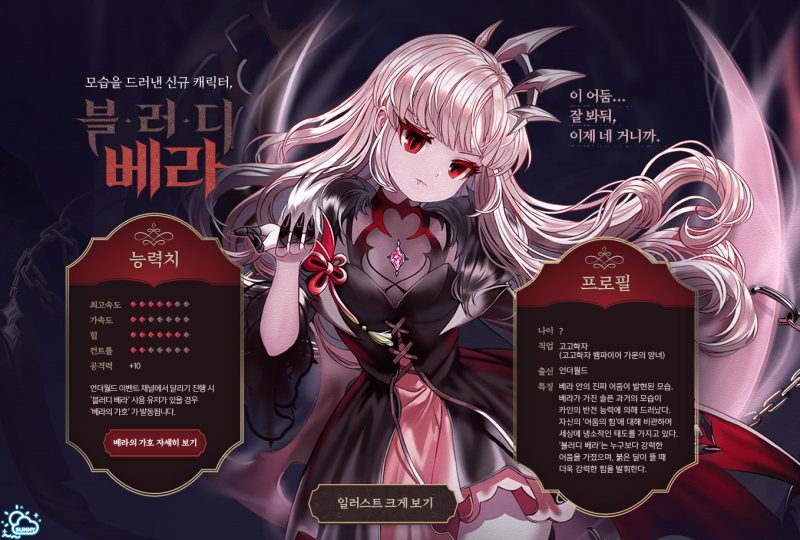 엘림스 스마일과 함께 2019년에 등장한 스토리 캐릭터. 연금착용 불가.