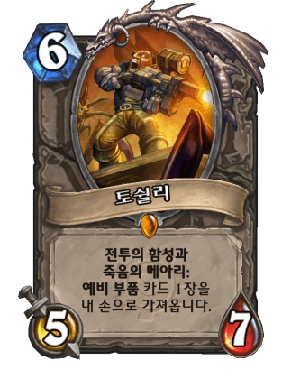 코스트도 무겁고 효과도 밋밋하기 때문이다.(전투의 함성 예비부품, 죽음의 메아리 예비부품...)