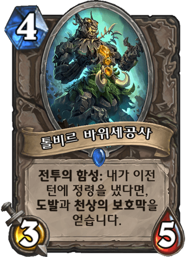 상대하는 어그로덱 입장에선 씹사기 카드지만 지가 정령이 아니라서 5턴에 칼같이 칼리모스의 시종같은 시너지 카드를 못 내기 때문에 정령술사도 2장까지는 안 쓴다. 여관주인도 덱에 한장만 넣어라고 추천한다.