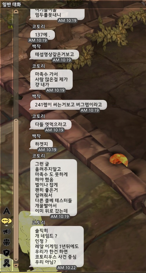 - 마족수감소 2구역 특정몬스터가 1실버를 드랍하는 현상 - 제작 중 좋아요!를 받으면 제작이 멈추는 현상 - 워프주문서 사용 시 위치가 저장되지 않는 현상 - 채팅창에서 스크롤이 동작되지 않는 현상 - 보스 체력게이지 UI가 사라지는 현상 - 지역 이동 시 컴패니언이 간혹 보이지 않는 현상 - 모험일지 리스트가 정상적으로 보이지 않는 현상 - 무기손질 후 아이템 링크가 되지 않는 현상 - 귓속말 채팅이 불가한 현상 - 인스턴스 던전이 초기화되지 않는 현상 - 소서러가 살라미온 소환 후 변이사용 시 마을에서 보스 소환수가 소환되는 현상 - 무기 스왑을 하거나 아이템을 클릭한 상태로 지역이동시 인벤토리가 보이지 않는 현상 - 파티결성 후 랜덤분배로 설정하고 그 인원을 보스를 처치하면 순위에 따라 획득되는 아이템이 랜덤으로 분배되는 현상 - 스테디에임 후 일반공격을 하면 피해와 모션이 일치하지 않는 현상 - 단검을 모루강화 시 모루능력치 증가표시가 0으로 되어 있는 현상