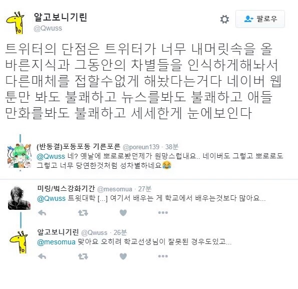 ㄴ실제로 트위터 하는 애들중 절반은 급식충이 많다.
