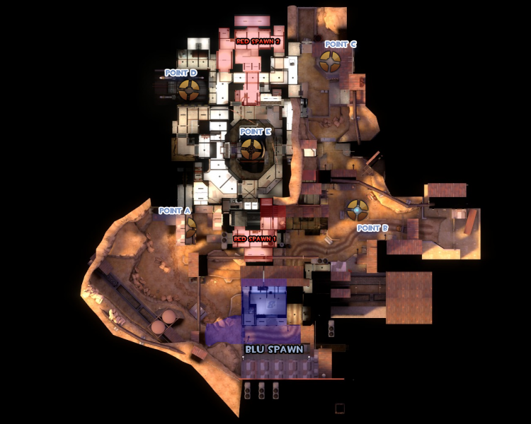 부분의 팀 포트리스 2 맵들과는 달리 지점을 점령하면 각팀의 경로가 열리고 닫히는 것으로 맵의 길목과 형태가 조금 달라진다. 결과적으로, 공격팀은 마지막 지점까지 어떻게 공격 할까에 대한 폭넓고 다양한 선택을 할 수 있다는것이다.