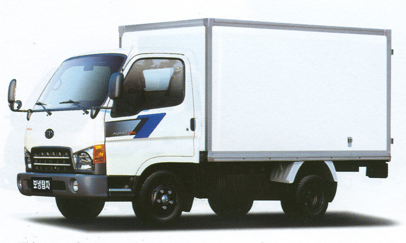 생긴것만 보면 마이티랑 헷갈리기 쉽지만,마이티하고 의외로 쉽게 구분가능한데 이새끼는 기아로고가 붙어있다. 1998년에 기아자동차와 아시아자동차가 현대자동차로 인수되었는데 인수 당시 트레이드는 1세대 마이티와 동세대에 해당되는 노인급 모델이었고, 모기업이 된 현대차는 노후화된 트레이드를 대체할 마이티2 기반의 후속 모델을 기아차에 공급했고 그것이 바로 파맥스이다. 2000년 10월에 트레이드의 후속으로 출시됐으며 기아에서 마지막으로 생산한 중소형 2톤~3.5톤급 트럭이다. 파맥스는 파워와 맥스의 합성어이며, 120마력의 3,300cc 터보 엔진을 장착하고 대용량 브레이크와 ABS 및 운전석 에어백(옵션)을 적용했다. 마이티2를 베이스로 만들었으며 마이티2의 페이스리프트 모델이기 때문에 앞 모습을 제외하고는 동일하다. 이새끼는 마이티2가 생산됐던 현대차 전주공장 라인에서 생산했으며, 생산비용 절감을 이루기도 했다. 하지만 파맥스는 마이티2와 차별성이 없다는 이유로 인기를 끌지 못했다. 아니 생긴것부터가 마이티 짝퉁같이 생겼는데 인기를 끄는게 이상한거다. 새로운 배기가스 기준을 충족시키지 못해 2004년 9월에 기아 라이노와 함께 후속없이 단종되었다. 이놈을 끝으로 기아의 준중형 트럭은 전부다 미국가셨다. 그해 12월에 마이티2의 페이스리프트 모델인 E-마이티가 출시되었는데 E-마이티는 후속모델 없이 단종된 이새끼를 베이스로 만들었다.