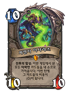 10코 10/10, 전투의 함성:이번 게임에서 낸 모든 타락한 카드를 내 손으로 가져옵니다. 이번 턴에 그 카드들의 비용이 (0)이 됩니다.