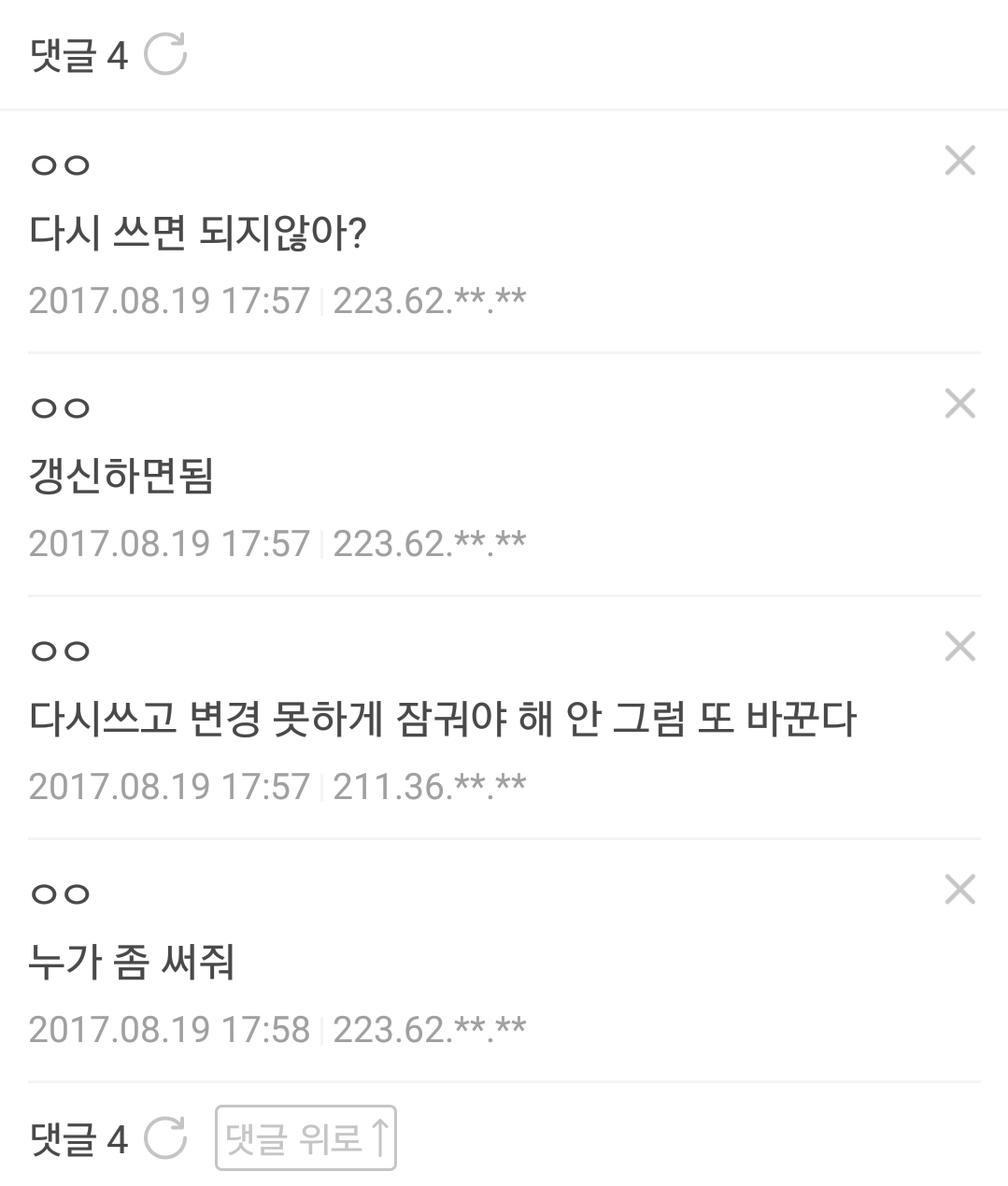 | 날짜/시간 | 섬네일 | 크기 | 사용자 | 설명 | |