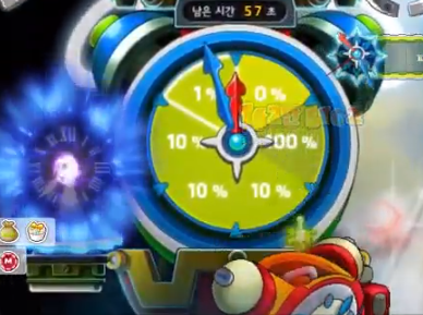 커여운 검은 폭탄을 잡으면 시간이 표시된 템이 나오는데 주우면 표기된 시간만큼 시침이 돌아간다. 그 시침이 가리키고 있는 100%~0% 칸에 두고 있는 상황에서 보이는 왼쪽 파란 포탈을 타게 되면 그 칸이 사라지게 된다.