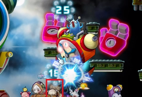 레이저: 파란 레이저와 빨간 레이저가 소환되어 회전한다. 몸으로 막을수 있으며 두 레이저가 만나면 맵 전체에 폭발이 일어나 999,999 데미지를 입고 즉사. 레이저가 사라진 순간을 기점으로 쿨타임은 30초.