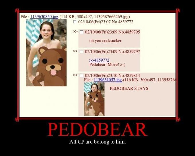 그덕에 쿠마는 4chan에게 개조당해 페도베어가 되고 4chan 로리야짤 보드의 마스코트가 됬따.