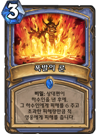 피 6이상이 걸릴일은 상대가 바보가 아닌 이상 거의 없고, 1/1 하수인을 남기지도 않으면서 딜낭비도 없으므로 사실상 변이 물약의 상위호환 비밀이라고 생각하면 된다.