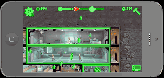 자동회수따위 없다. 일일히 생산완료된 시설들 쿡쿡 눌러줘야한다. -미스터핸디를 돈주고 사면 아주 천천히 한층만 수거한다. 진짜 이놈들은 딱 자원만 수거한다. 거주민 레벨업은 직접 눌러서 받아야 한다.