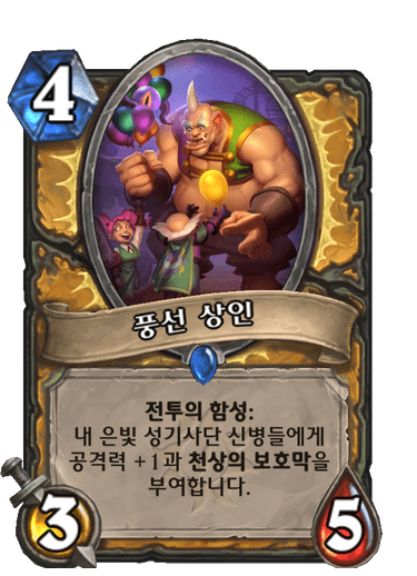 4코 3/5, 전투의 함성:내 은빛 성기사단 신병들에게 공격력 +1과 천상의 보호막을 부여합니다.