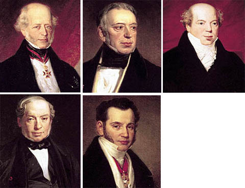 마이어의 다섯 아들들 순서대로 암셸, 잘로몬, 나탄, 카를, 야콥