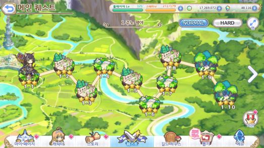 사실 장비 수급의 99%는 여기서 나오니까 막힐 때 까진 최대한 메인 스토리 미는거에 집중해보자. 도중에 모험이 막히면 랭크랑 레벨을 올리자. 전투 시작전에 클리어 파티를 보고 카피해서 깨는 방법도 있으니 거기서 나오는 레벨이랑 랭크를 유추해보고 덱을 짜보자.