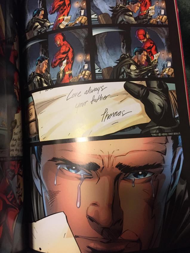 토마스 웨인의 대국적인 칼빵을 맞고 죽고 플래시가 다시 지 세계를 돌려놓을려고 한다