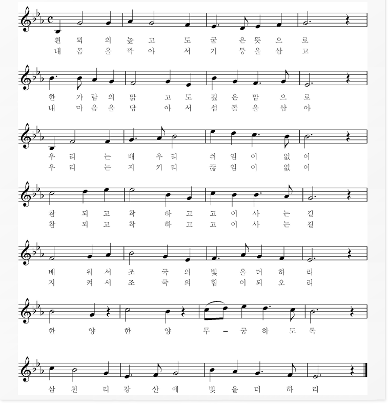 흰 뫼의 높고도 굳은 뜻으로 |