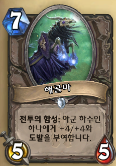 7코 5/5, 전투의 함성:아군 하수인 하나에게 +4/+4와 도발을 부여합니다