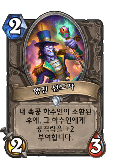 2코 2/3, 내 속공 하수인이 소환된 후에, 그 하수인에게 공격력을 +2 부여합니다.