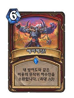 6코, 내 방어도와 같은 비용을 가진 무작위 하수인 하나를 소환합니다. (최대 10)
